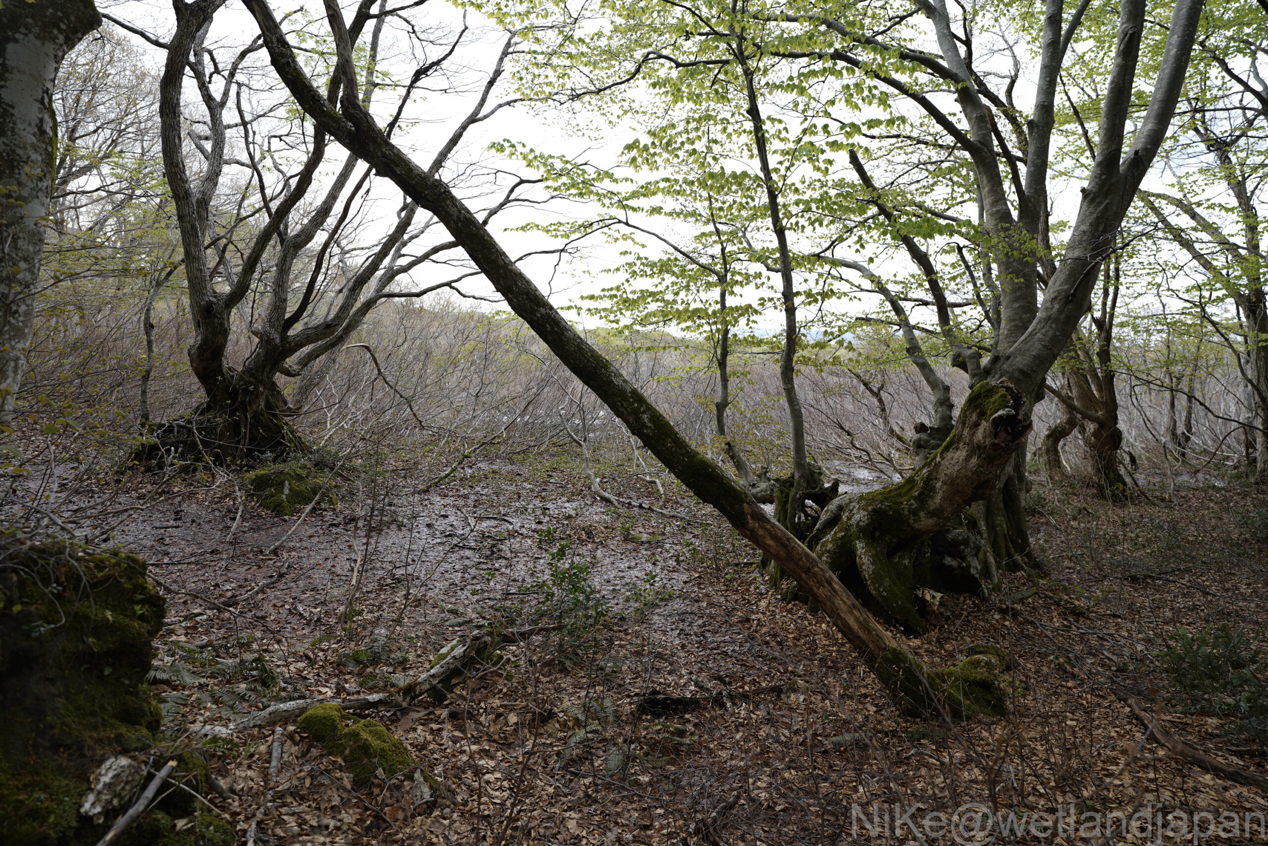 この地域は、あがりこ大王に代表される奇妙な形のブナが知られるが、このブナたちもだいぶ奇妙な形だ。