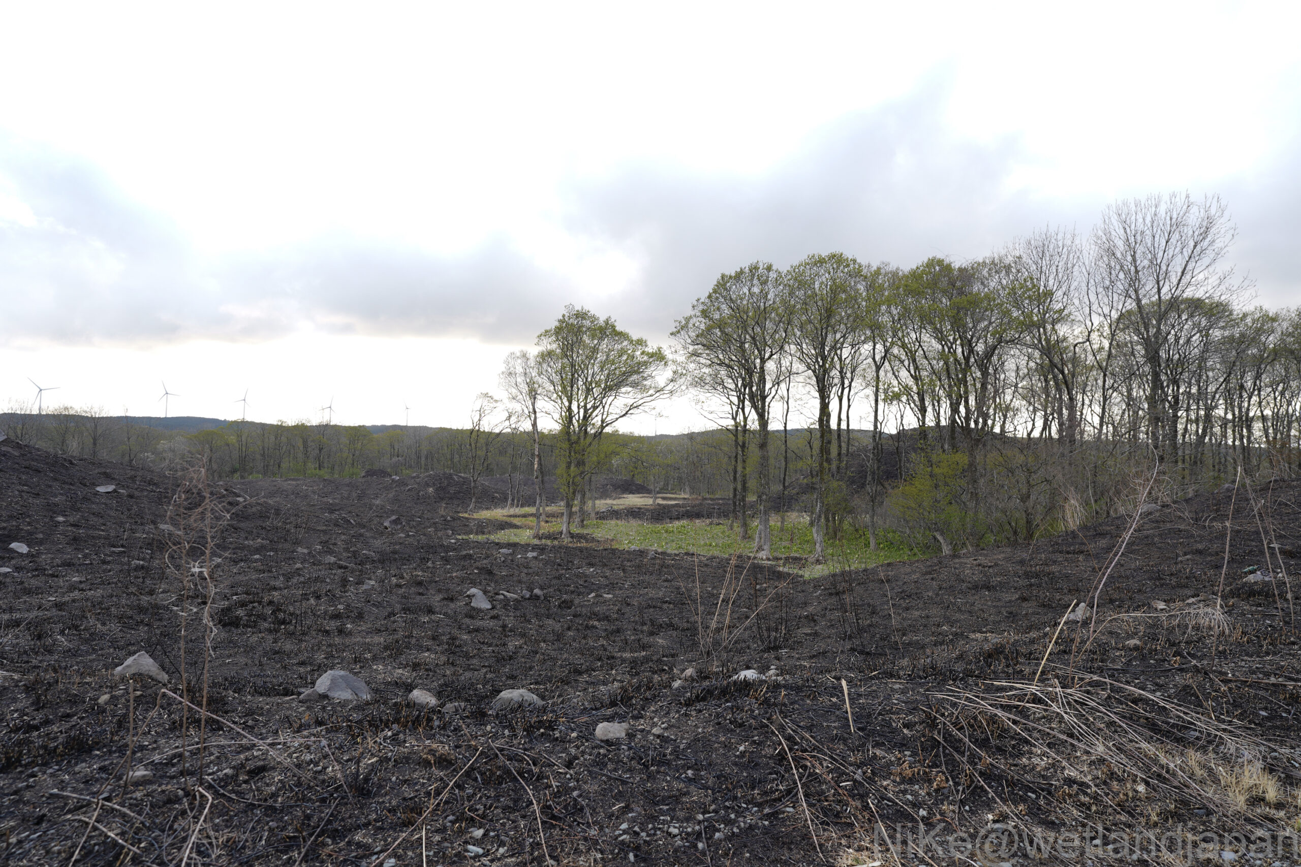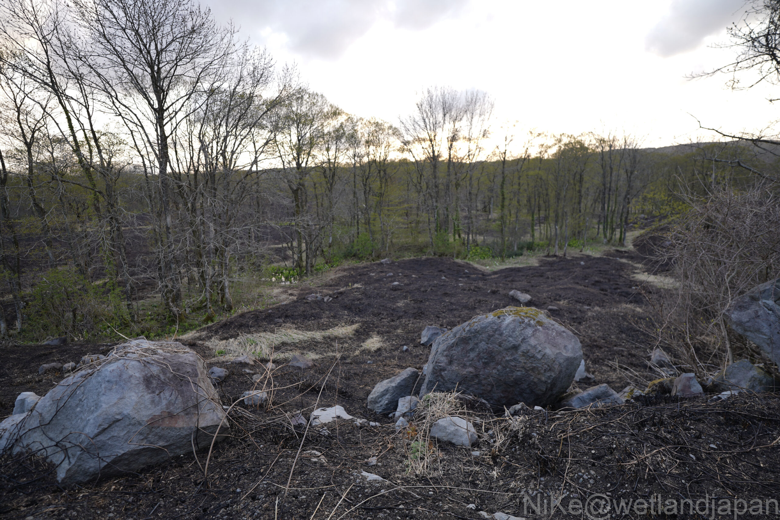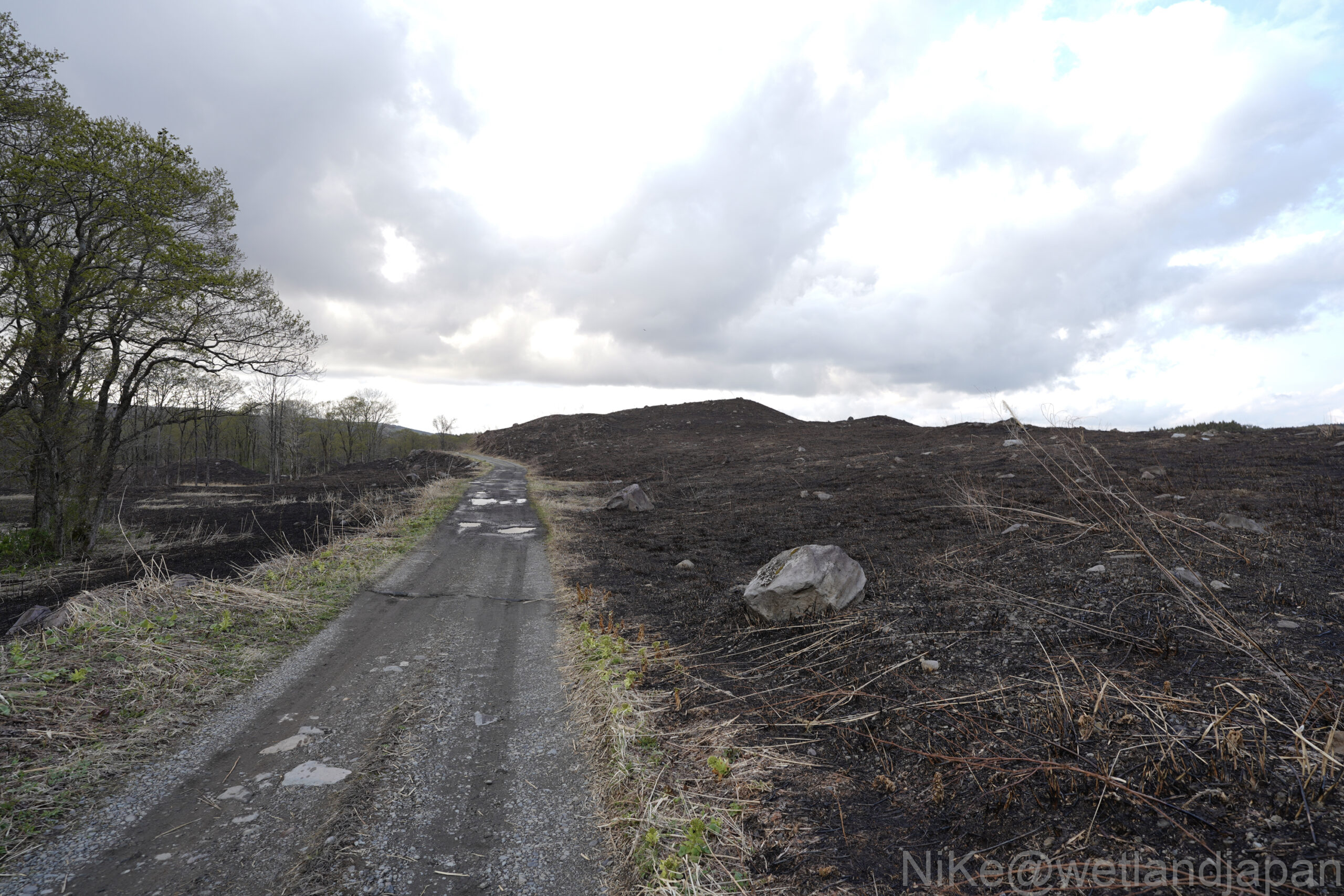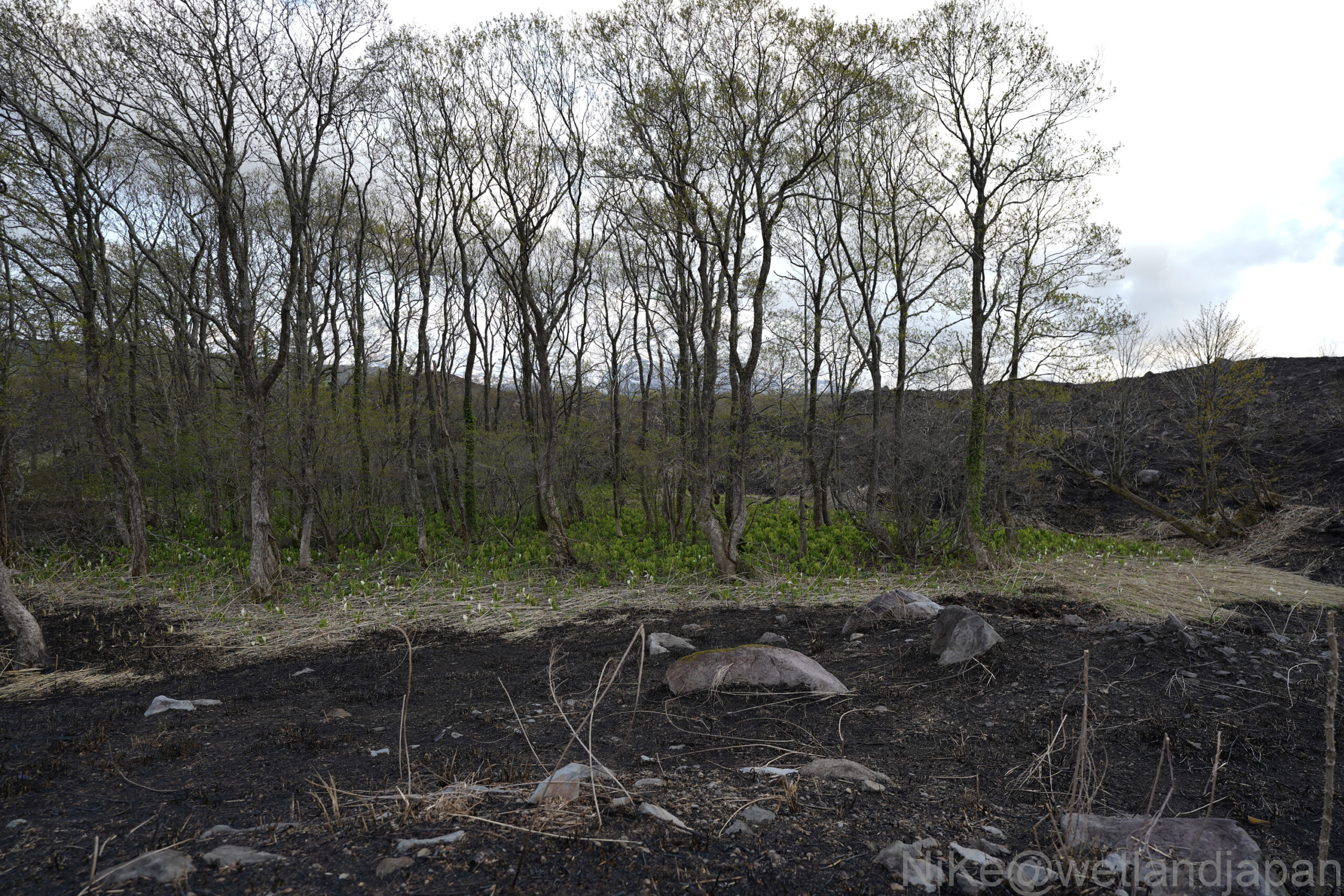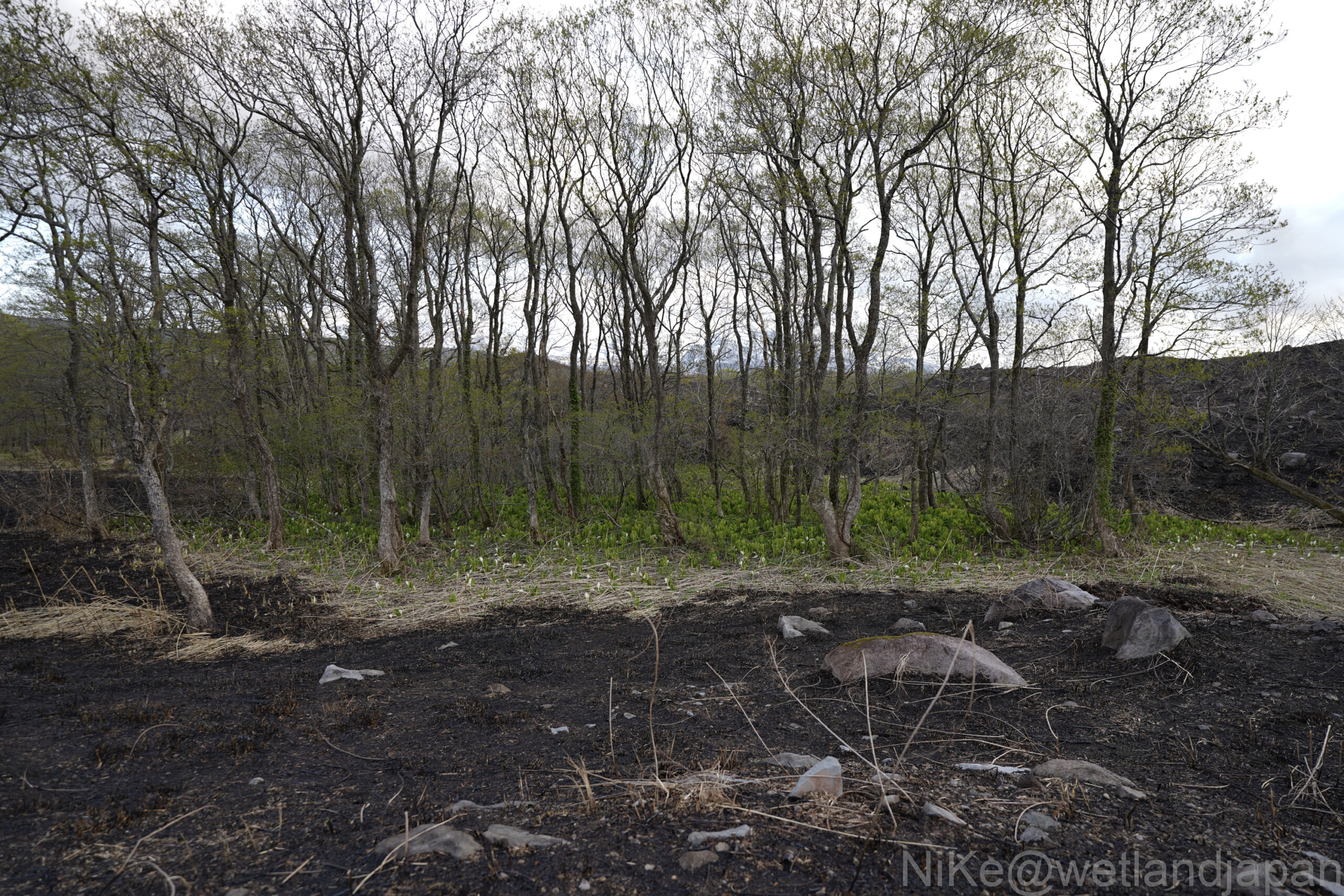 野焼き直後だったため、ミズバショウのみだったが、ここから色々な湿地植物たちが顔を出すのだろう。