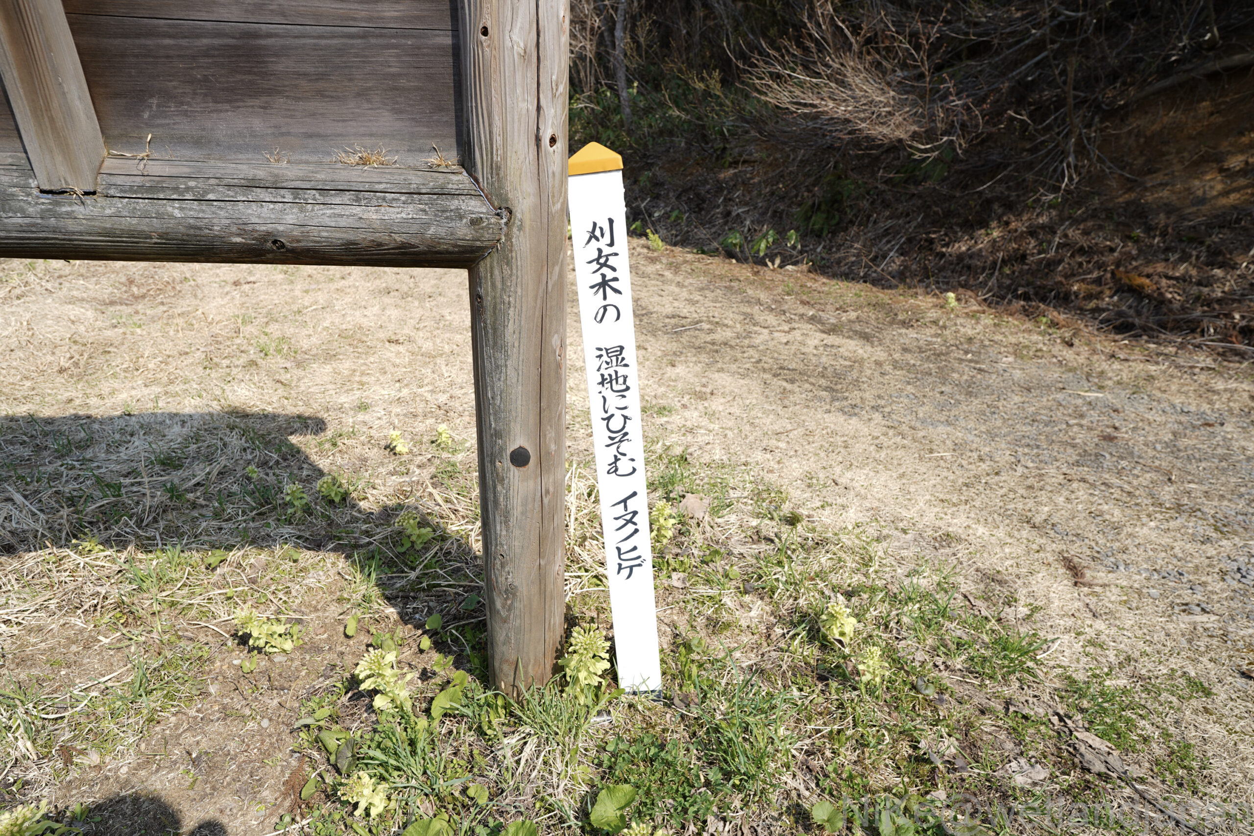 看板によると64種の植物種が生息することに加えて、この湿原固有種のガリメギイヌノヒゲが生息する貴重な環境である。