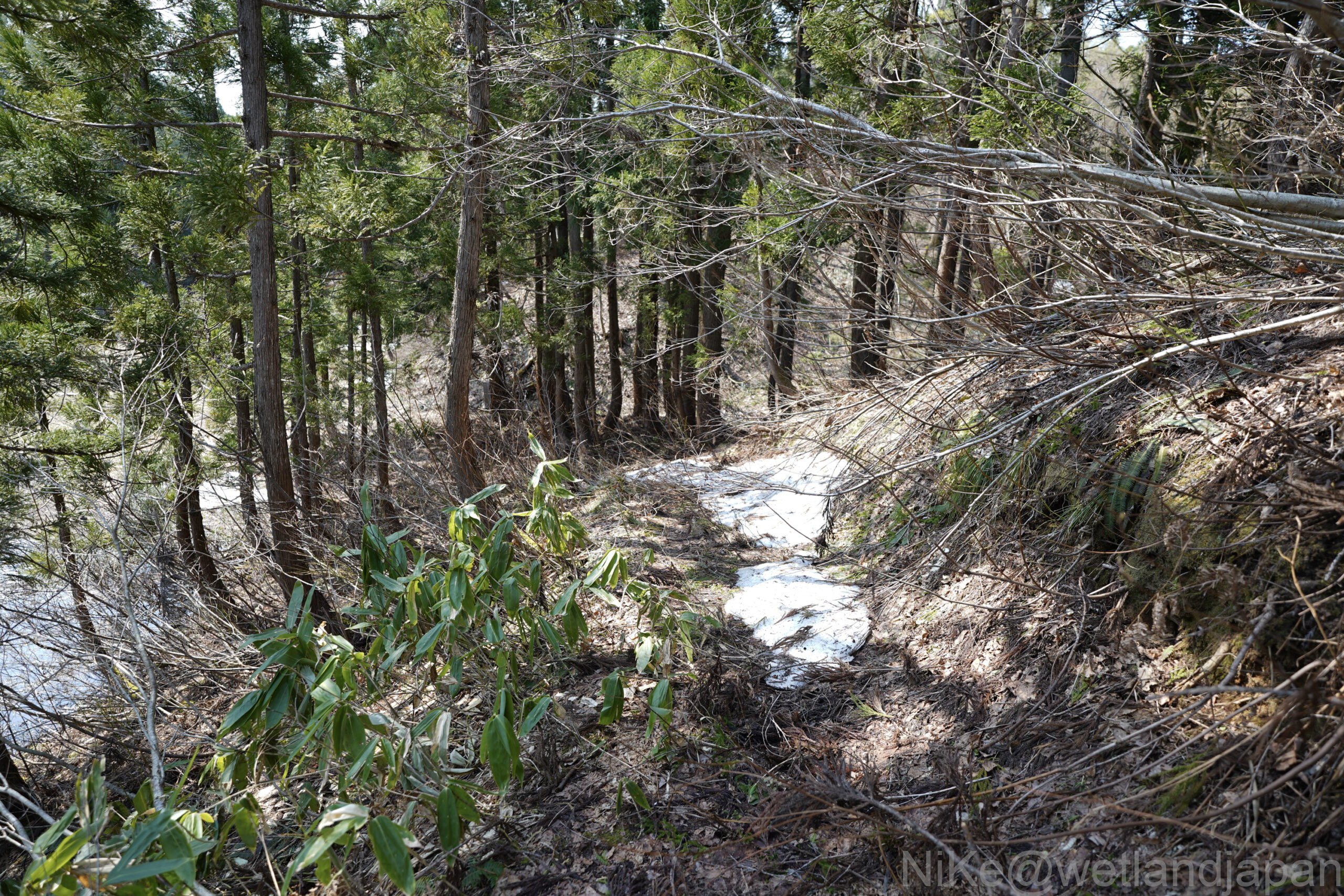 残雪が残る道を進んでいく。