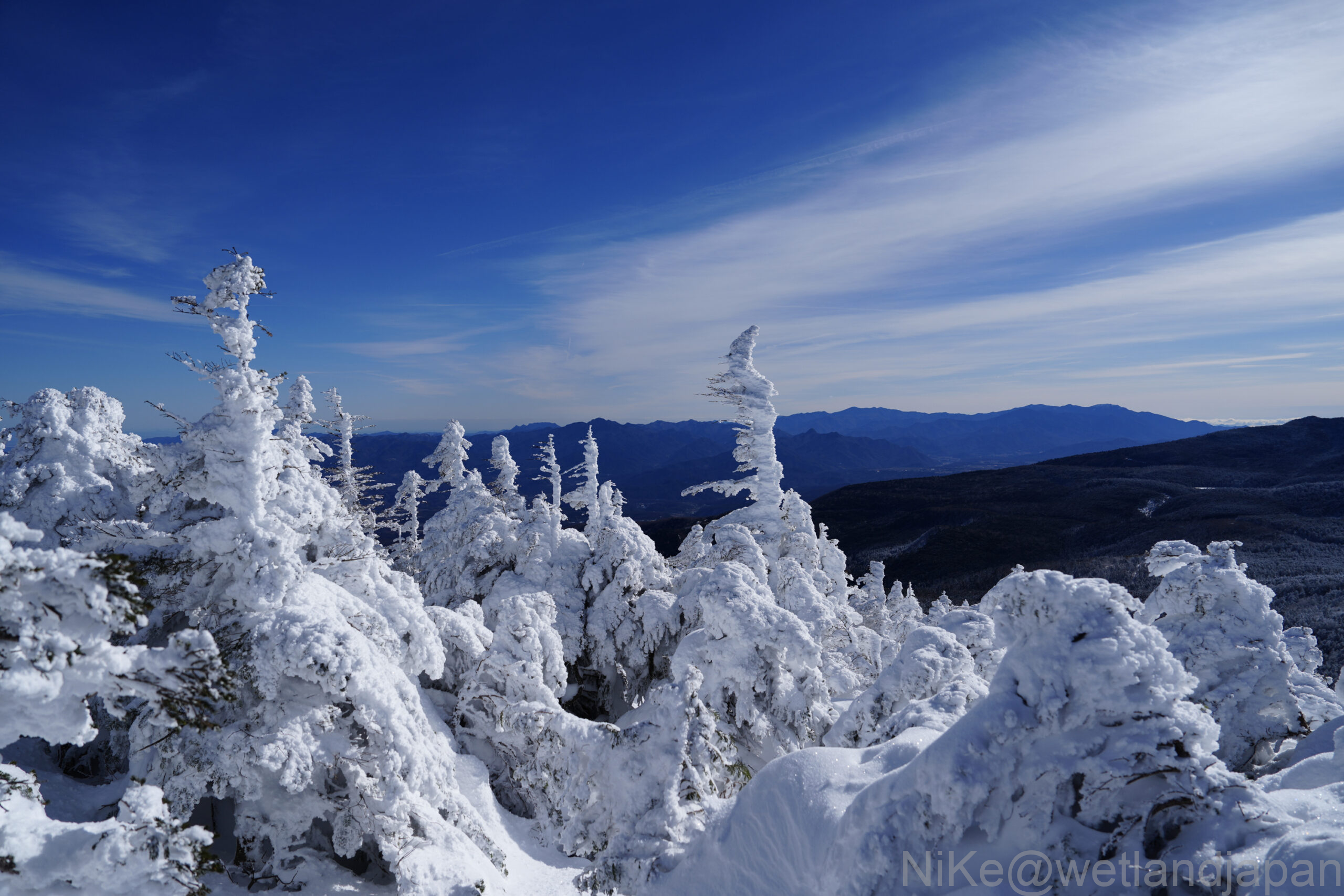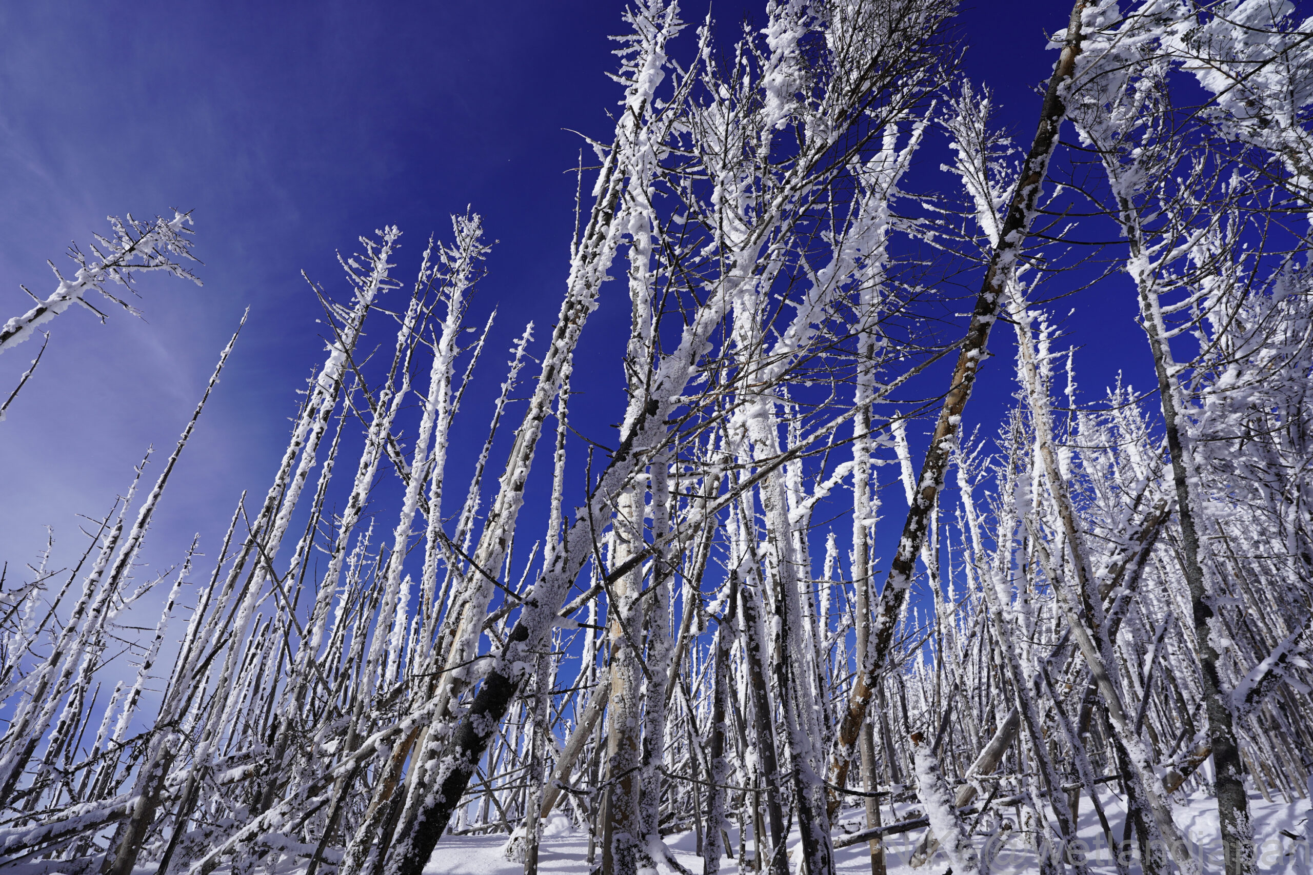 凍りついた木々が独特の形を作る。