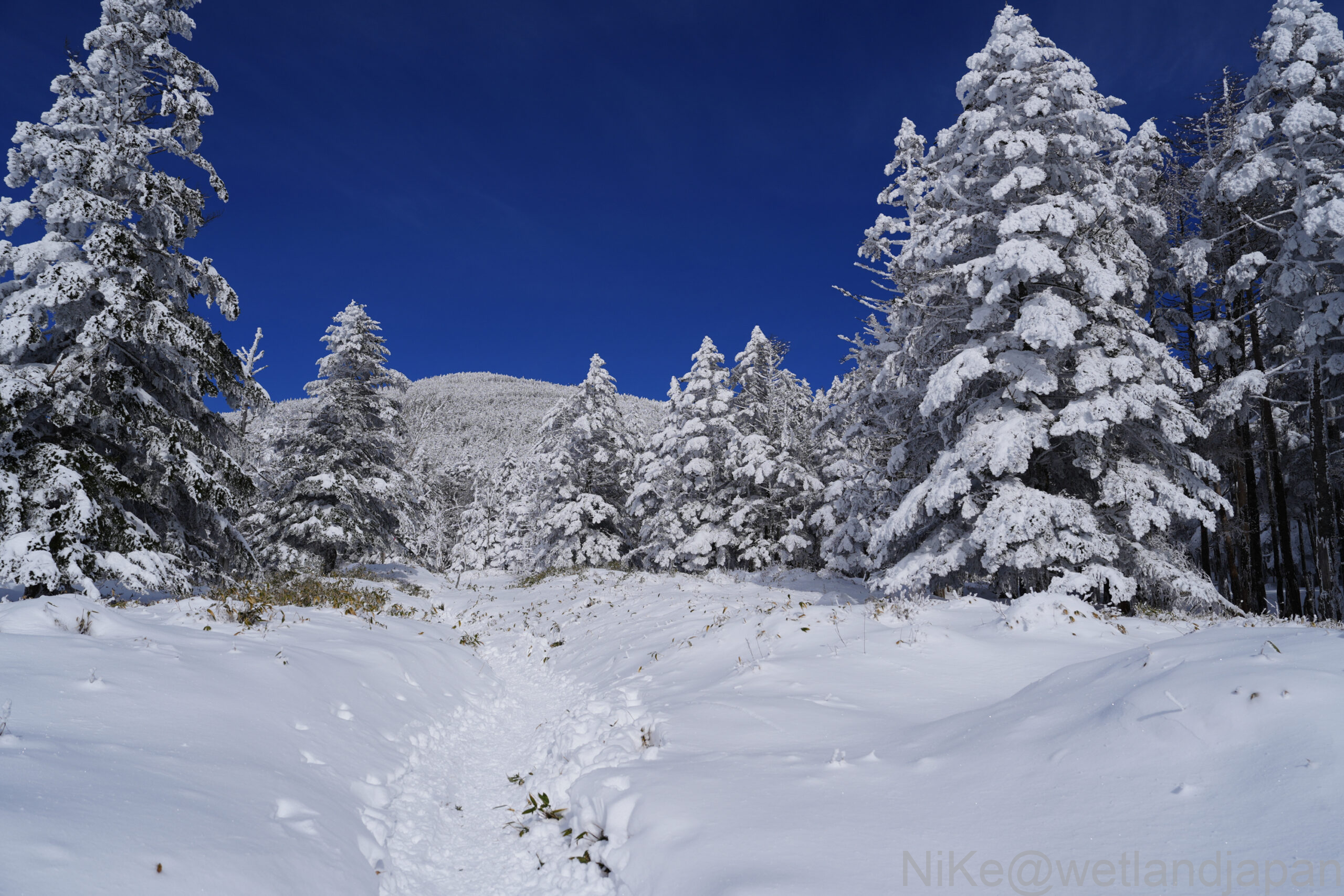 登山たちが歩いた後が残っている。