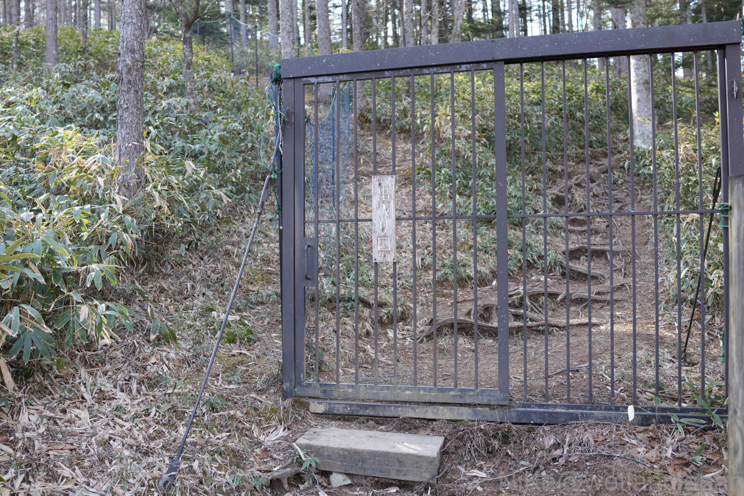 登っていくとネットで囲われた場所と鉄の門が現れる。