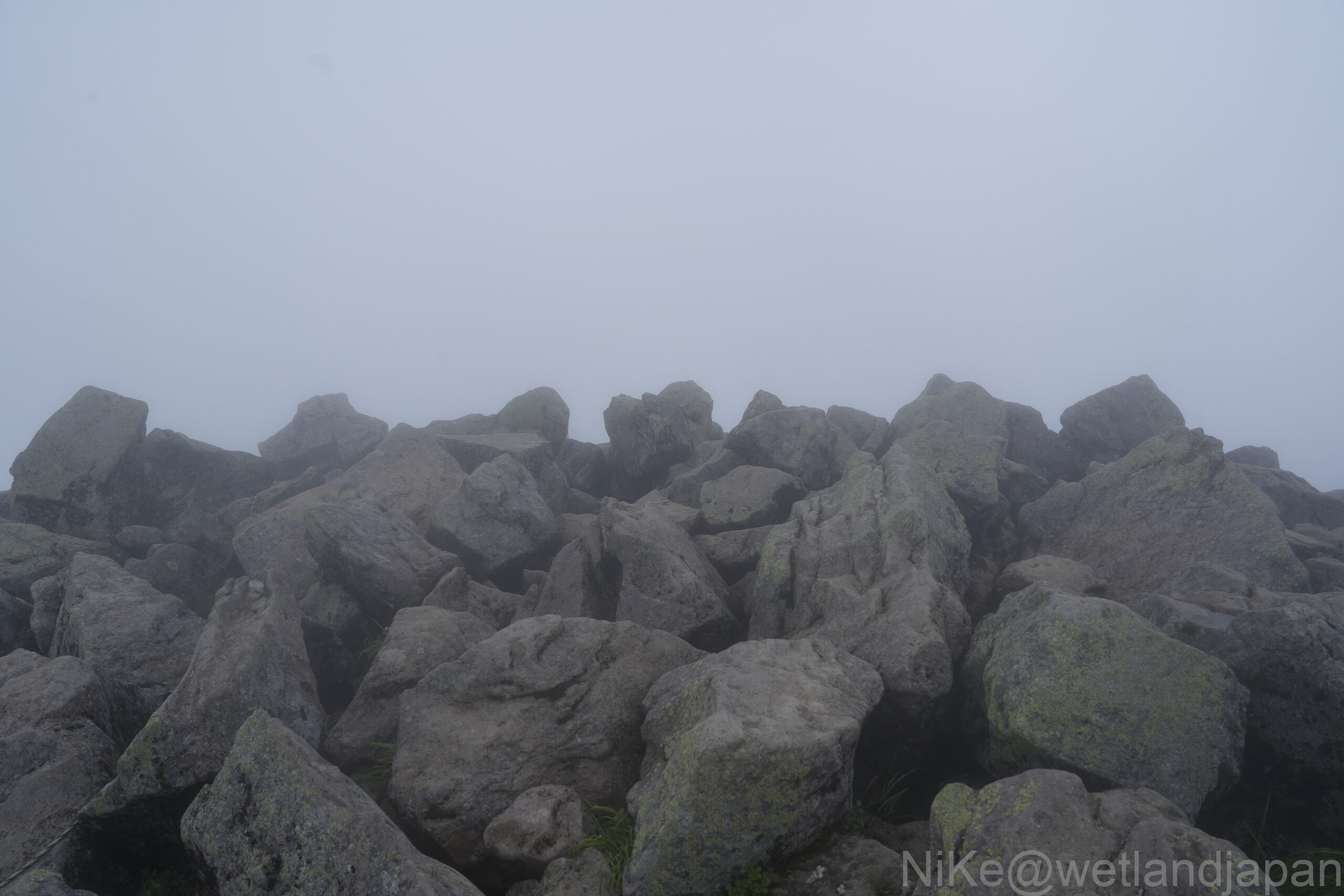 大きな岩の連なる火山らしい雰囲気の山頂。